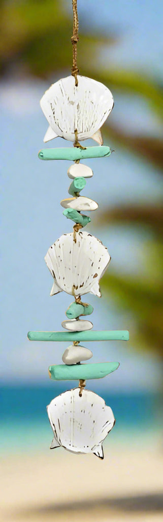 Elevate your coastal decor with the Scallop Shell Bamboo Garden Strand, featuring hand-painted wood, natural seagrass rope, beach stones, and turquoise driftwood. This carefully crafted piece brings authentic seaside charm to any home or garden setting, blending organic textures with subtle hues for a refined, beach-inspired accent.
