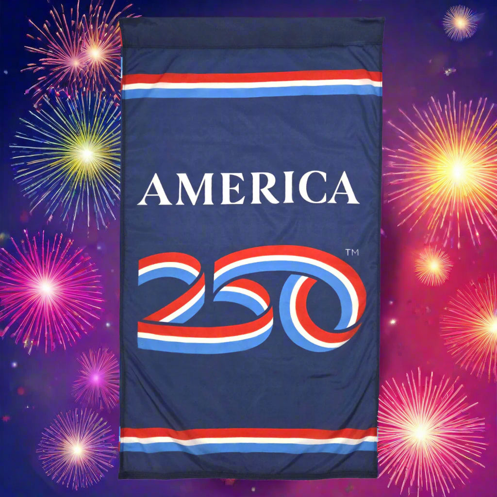 Celebrate the 250th anniversary of the Declaration of Independence with the Nyl-Glo America 250 2.5x4' Annin Banner Flag which hangs vertically. This specially designed flag features a bold “250” emblem that honors America’s rich history and inspires hope for the future. Crafted for durability and outdoor use, it proudly supports your patriotic celebrations while showcasing quality craftsmanship made in the USA. Perfect for marking this historic milestone with pride and respect.