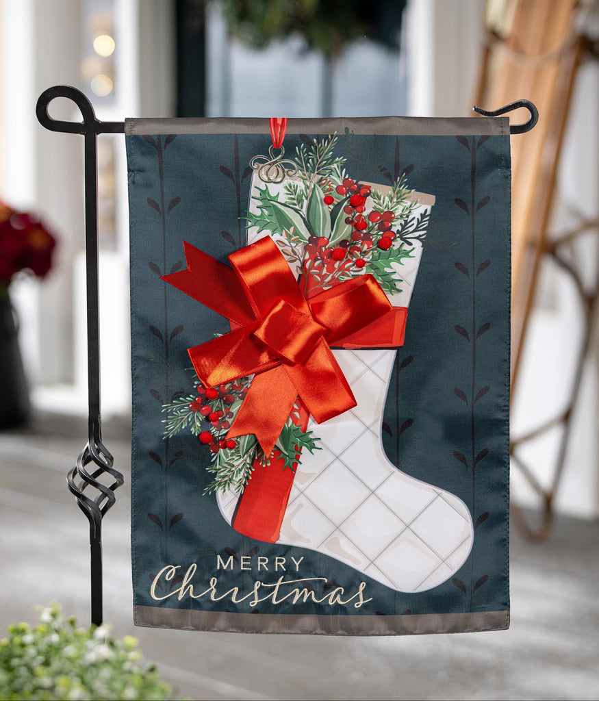 Add an enchanting touch to your outdoor décor with the Christmas Stocking Applique Garden Flag. Showcasing a beautifully crafted stocking adorned with detailed applique accents, this flag brings festive elegance to any garden or yard. Designed for seasonal charm, it transforms your space with subtle sophistication and holiday spirit, making it a refined choice for celebrating the season outdoors.