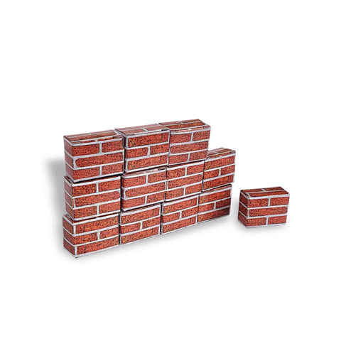 The new Evel Knievel Stunt Cycle Jump Accessories kit is here! This incredible set ships flat for you to assemble two custom designed Evel Knievel buses, two trucks, one scramble van, a fire ring and a 12 piece brick set. This pliable paper board kit will give you the props you need for the greatest jumps ever! Can you jump through the fire ring over the vehicles and break the wall?