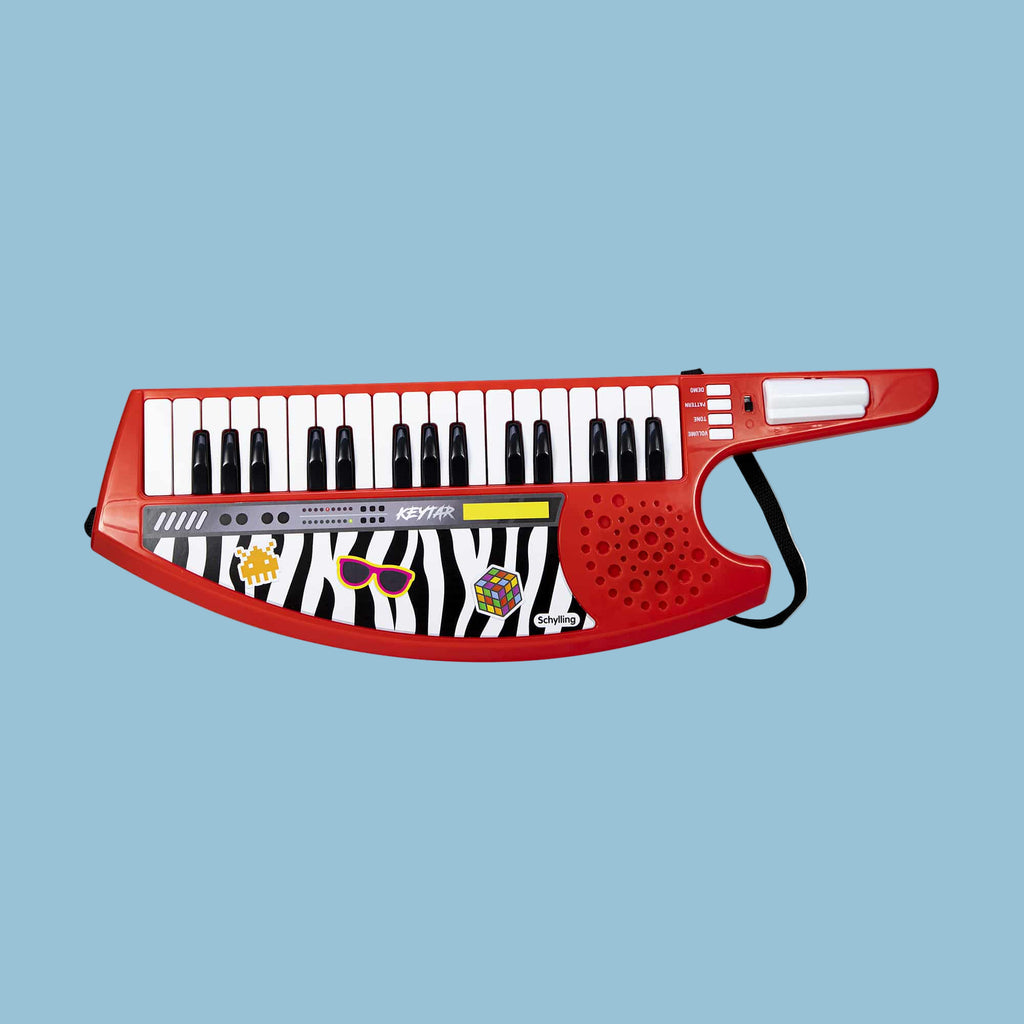 PowerStar Keytar lets you embrace your inner legend and take center stage! Create stylin’ synths with just a press of a button. Bang on the keys, throttle the whammy bar and make some totally tubular tunes. With intricate details and vivid colors, this rad 80s-inspired instrument is sure to steal the show!